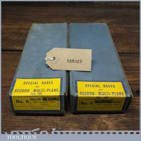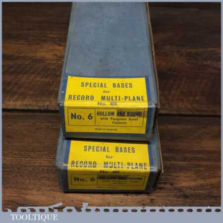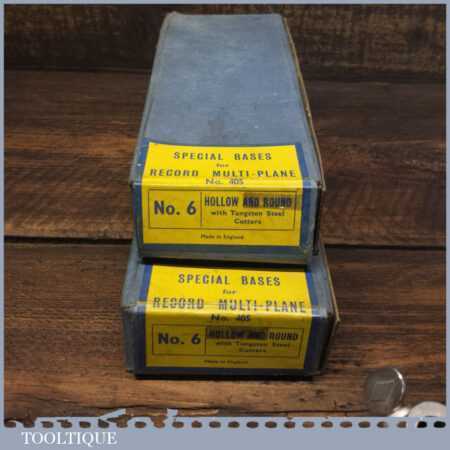Scarce vintage boxed Record No: 8 hollow and round special bases with cutters for Record No: 405 combination plough plane, in little used condition.