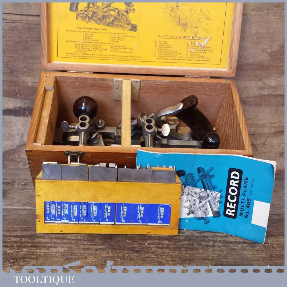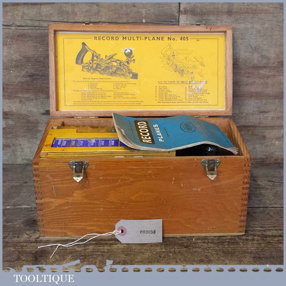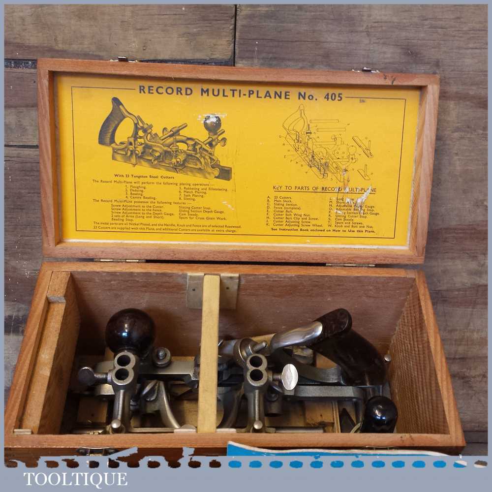 Vintage Boxed Record N0: 405 combination plough plane in good used condition.