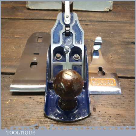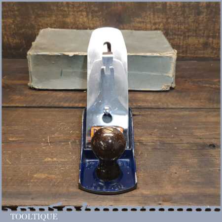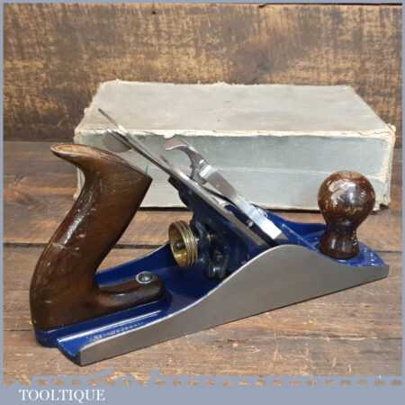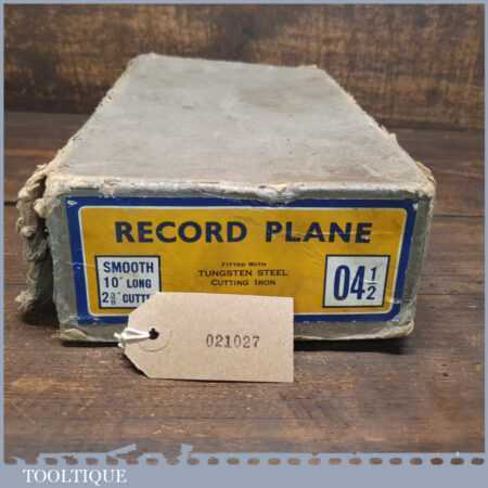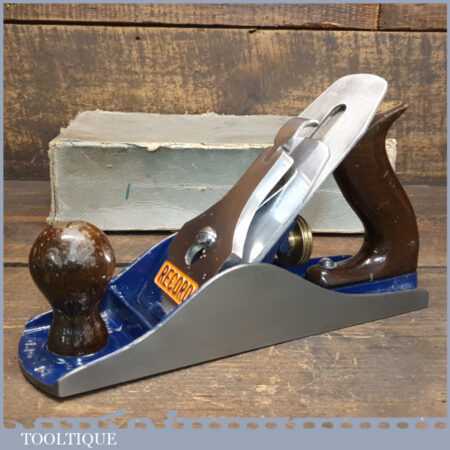 Vintage boxed Record No: 04 ½ wide bodied smoothing plane, refurbished and in good used condition ready to use. Note: Original paint and have left the handles with their original lacquer to show how little use it’s had. Box has seen better days but keeps the plane clean