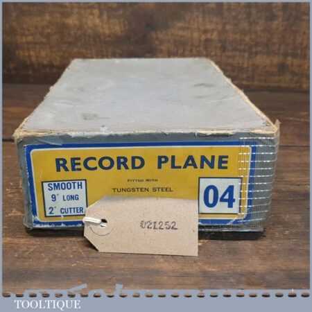 Vintage 1950’s boxed Record No: 04 smoothing plane, fully refurbished and in good used condition, ready to use. Manufactured between 1952-58.