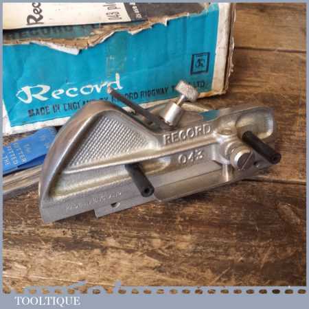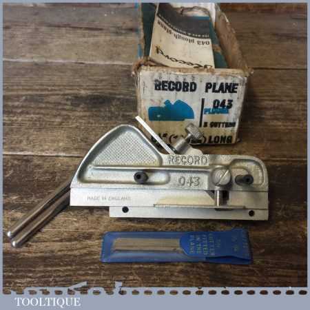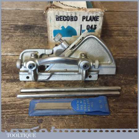 Vintage boxed Record No: 043 plough plane with 3 No: cutters in very good lightly used condition.