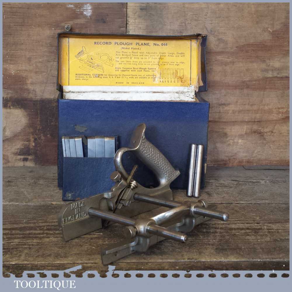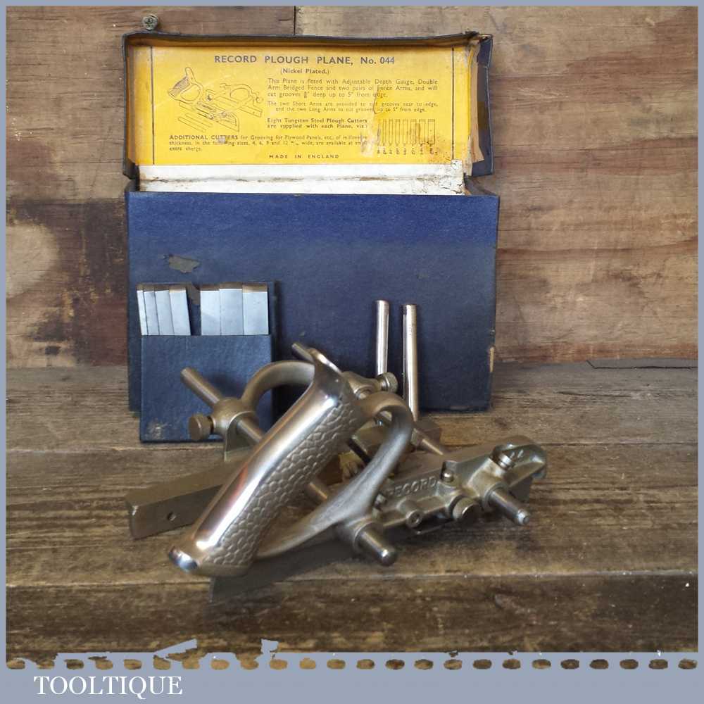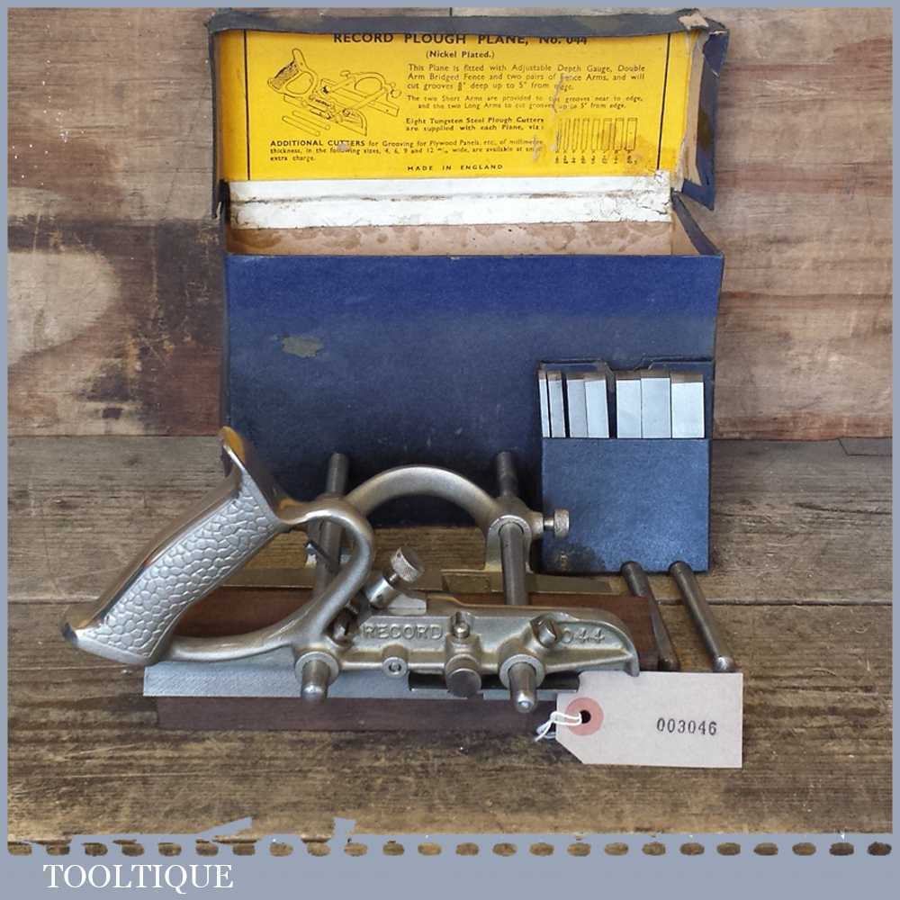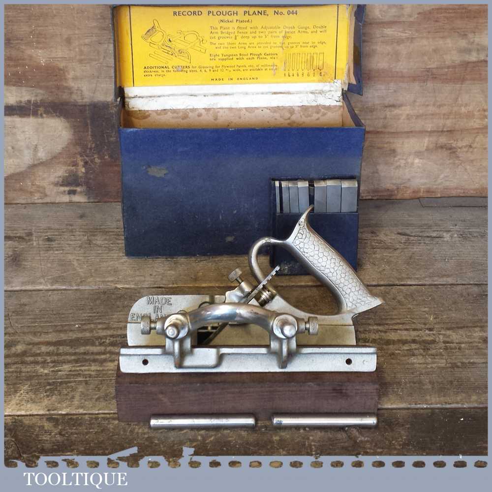 Vintage Boxed Record No: 044 combination plough plane in good used condition.