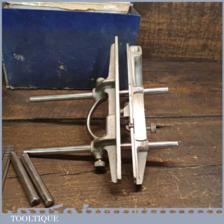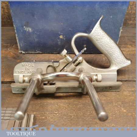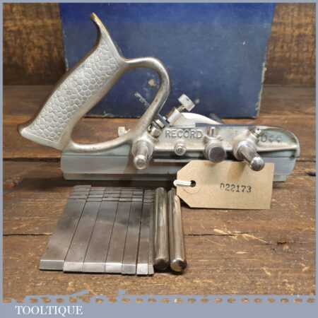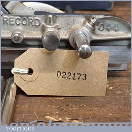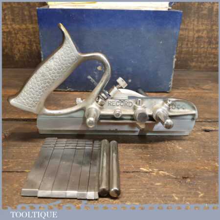 Vintage boxed Record No: 044 plough plane complete with 8 cutters, fully refurbished and ready for use. The plane is in good condition and all components move smoothly. Note: We do not sharpen the irons.