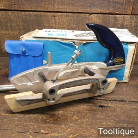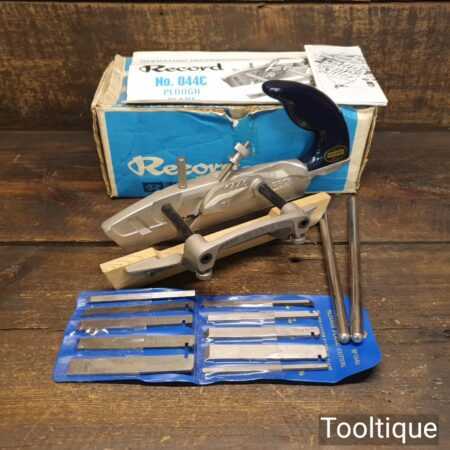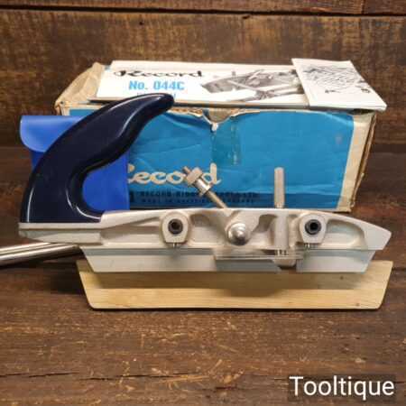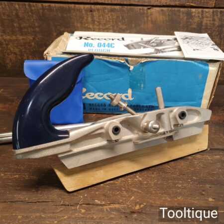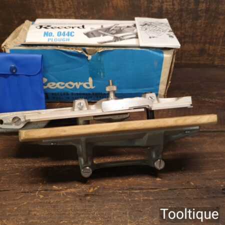 Vintage boxed Record No: 044C plough plane complete with 10 cutters, fully refurbished and ready for use. The plane is in good condition and all components move smoothly. Note: We do not sharpen the irons. Note: The depth gauge locks into position by turning the know which swells an internal nylon washer.