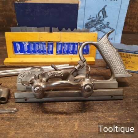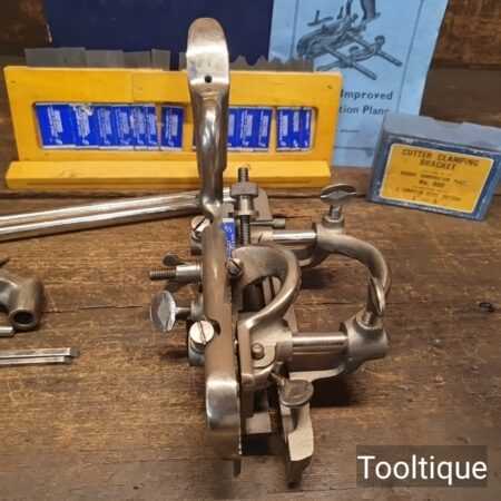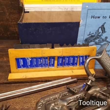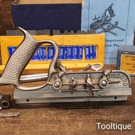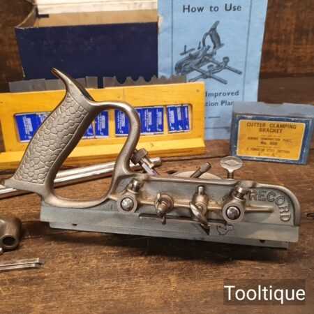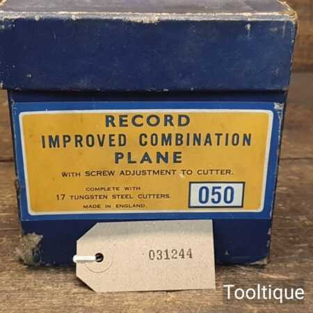 Vintage Boxed Record No: 050 combination plane complete with all parts and cutters, refurbished ready for use and in good used condition. Note: It retains most of its original nickel coating 99%+, very clean example.