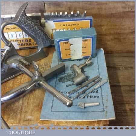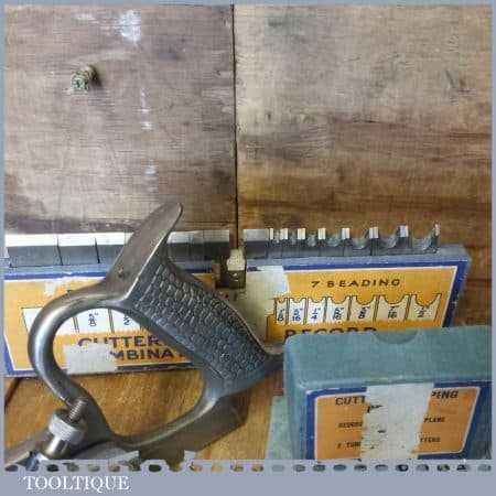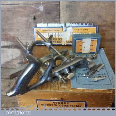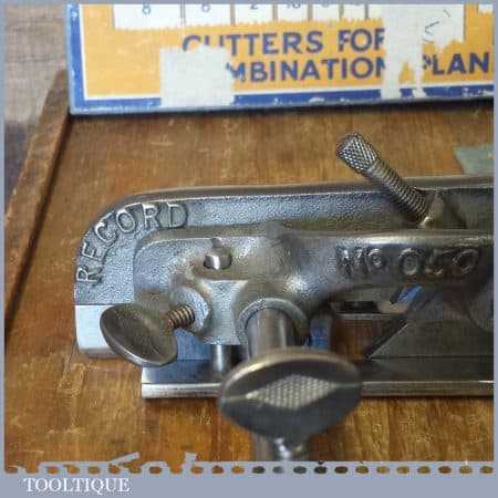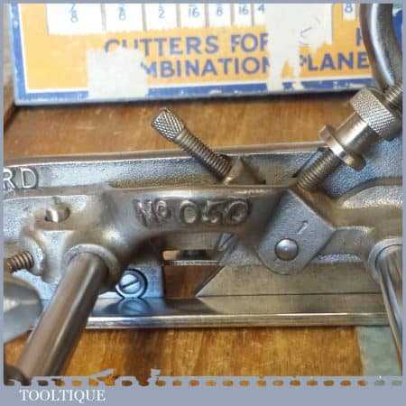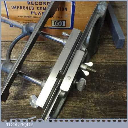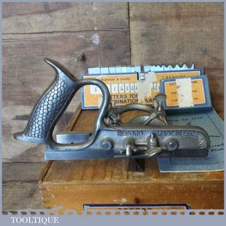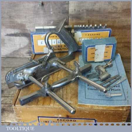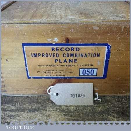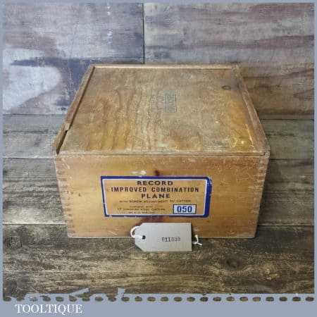 Vintage boxed Record No: 050 combination plough plane complete and with all 18 cutters, fully refurbished and ready for use. The plane is in excellent condition and all components move smoothly. Note: We do not sharpen the irons.