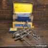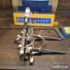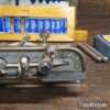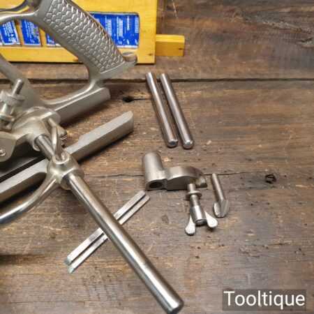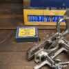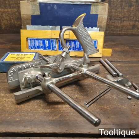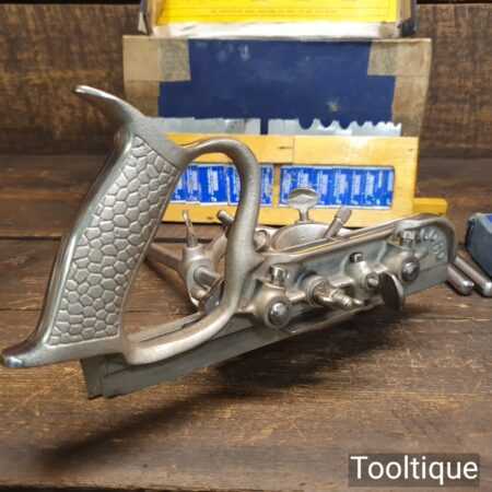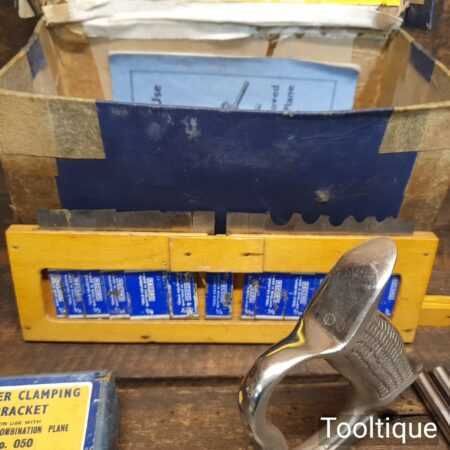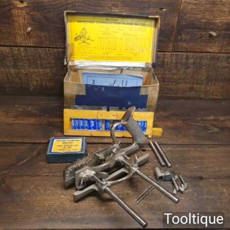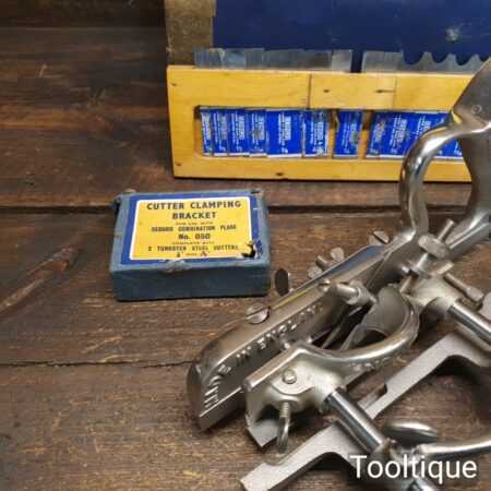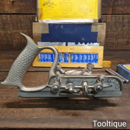 Vintage boxed Record No: 050 combination plough plane complete with 17 cutters, fully refurbished and ready for use. The plane is in good condition and all components move smoothly. Note: We do not sharpen the irons, box has seen better days.