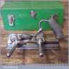 Vintage boxed Record No: 050 combination plough plane complete with cutters, fully refurbished and ready for use. The plane is in good condition and all components move smoothly. Note: We do not sharpen the irons