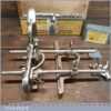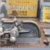 Vintage Boxed Record No: 050 combination plough plane complete with 18 cutters, fully refurbished and ready for use. The plane is in good condition and all components move smoothly. Note: We do not sharpen the irons.
