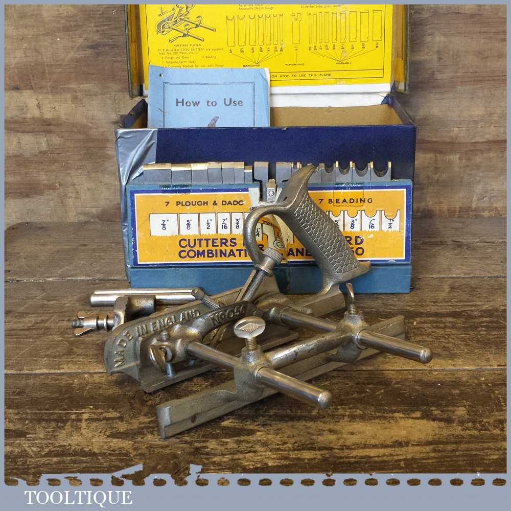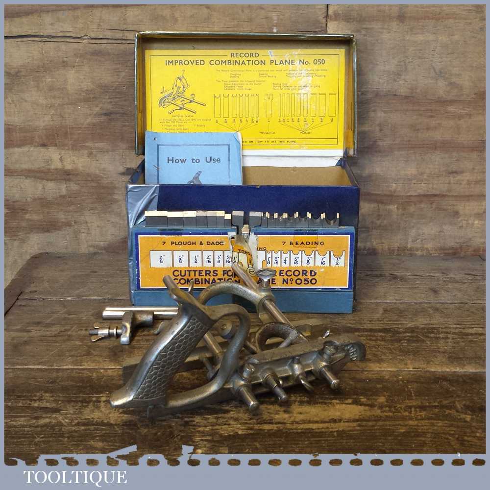 Vintage Boxed Record No: 050 combination plough plane in good used condition.