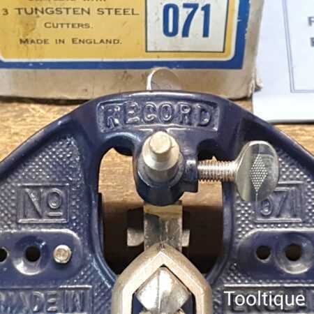 Vintage Boxed Record No: 071 hand router plane complete with fence, depth stop and 3 irons and in good used condition.