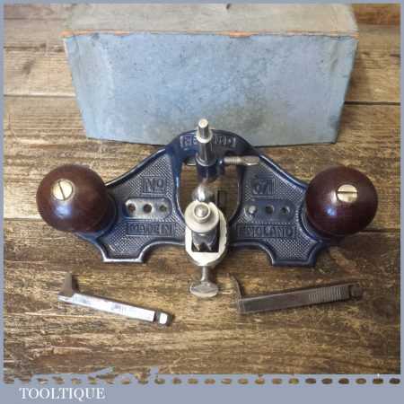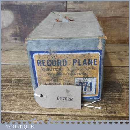 Vintage boxed Record No: 071 hand router plane complete with fence, depth stop and 3 irons and in good used condition.