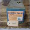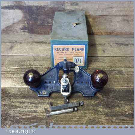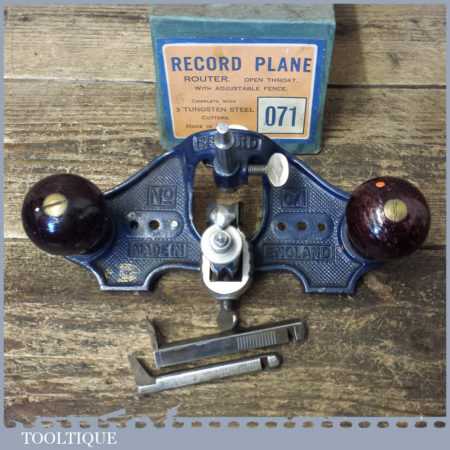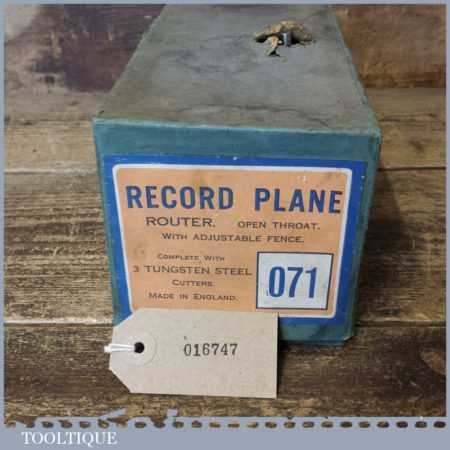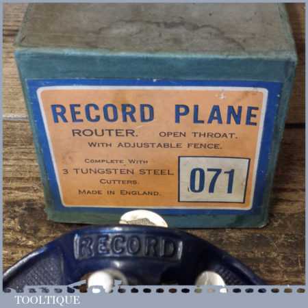 Vintage boxed Record No: 071 hand router plane complete with fence, depth stop and 3 irons and in little used condition.