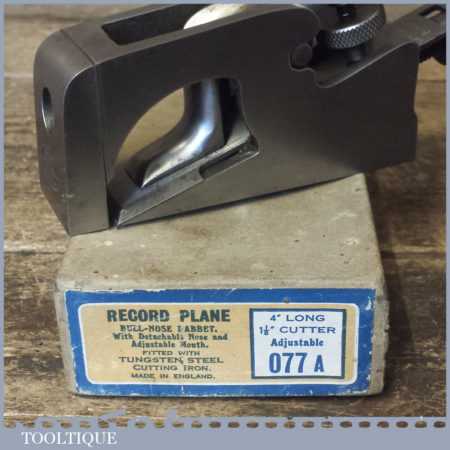 Vintage boxed Record No: 077A bull nose or chisel plane in good used condition, fully refurbished ready to use and in good used condition.