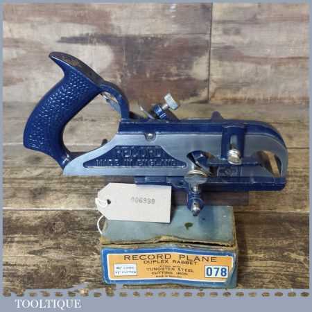 Vintage boxed Record No: 078 duplex rabbet plane in good used condition and ready for use.