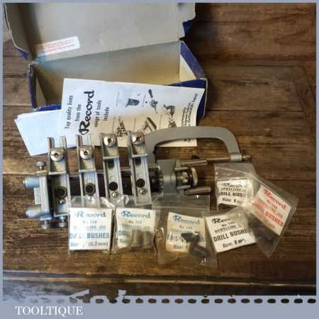 Vintage boxed Record No: 148 dowelling jig with extras and in good used condition.