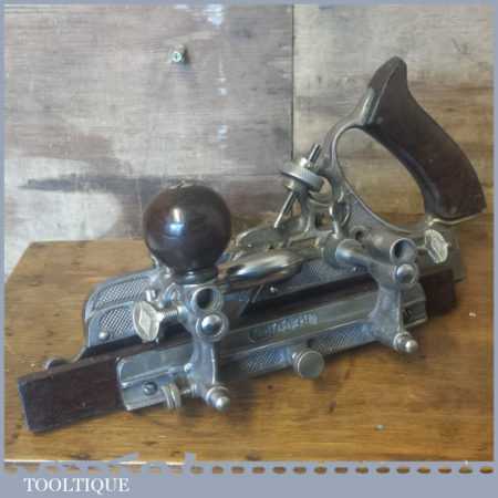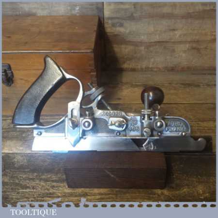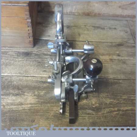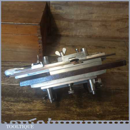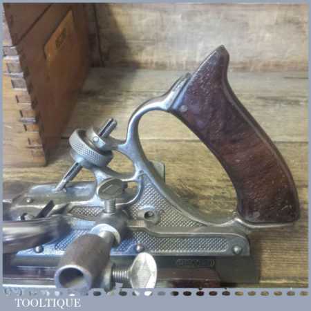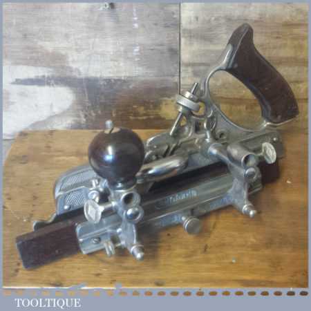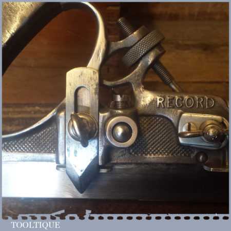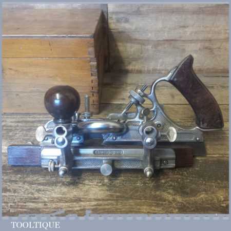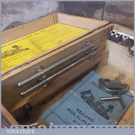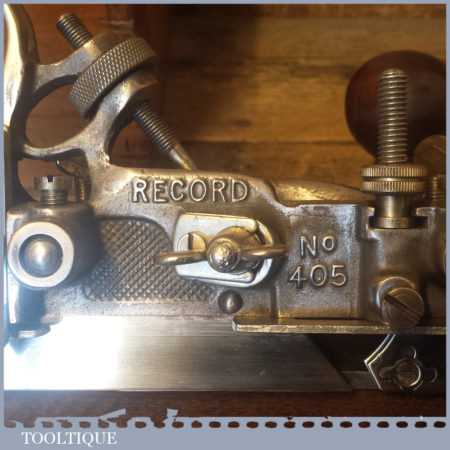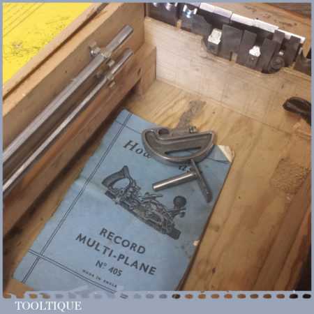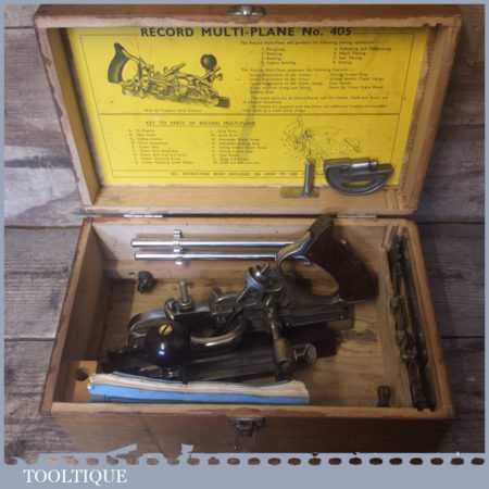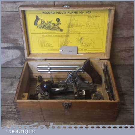 Vintage boxed Record No: 405 combination plough plane complete with 22 cutters, fully refurbished and ready for use. The plane is in good condition and all components move smoothly. Note: We do not sharpen the irons.