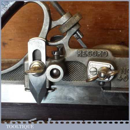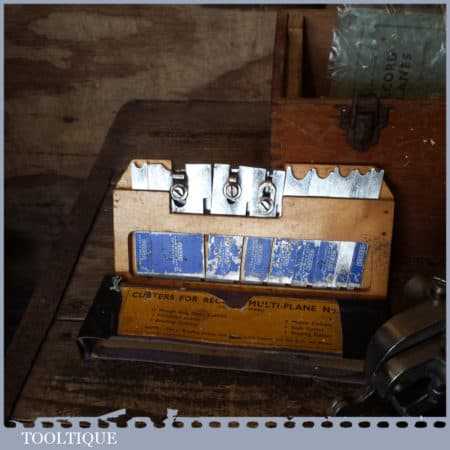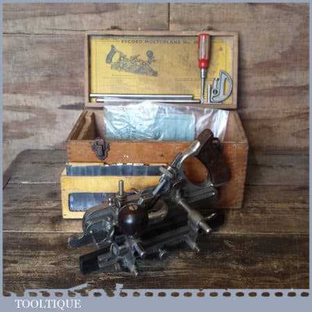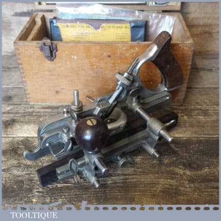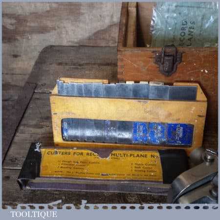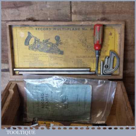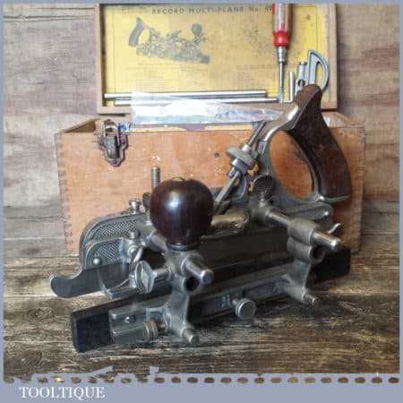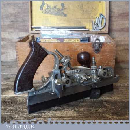 Vintage boxed Record No: 405 combination plough plane complete with 22 cutters, fully refurbished and ready for use. The plane is in good condition and all components move smoothly. Note: We do not sharpen the irons.
