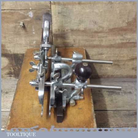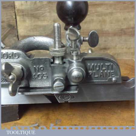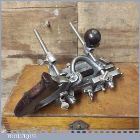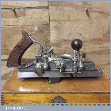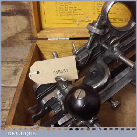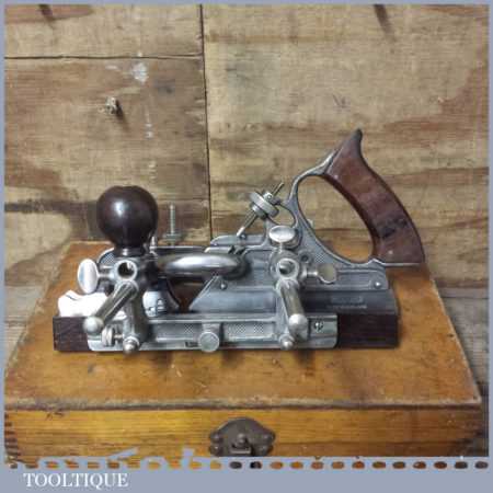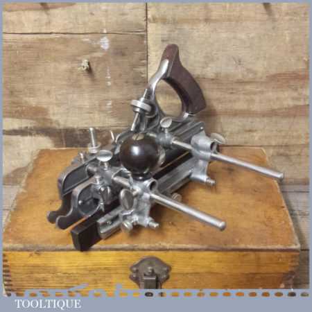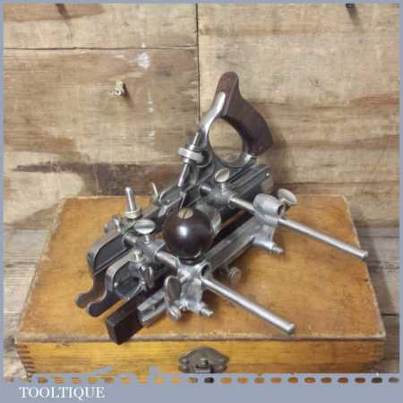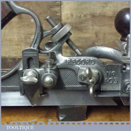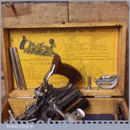 Vintage boxed Record No: 405 combination plough plane complete with 22 cutters, fully refurbished and ready for use. The plane is in good condition and all components move smoothly. Note: We do not sharpen the irons.