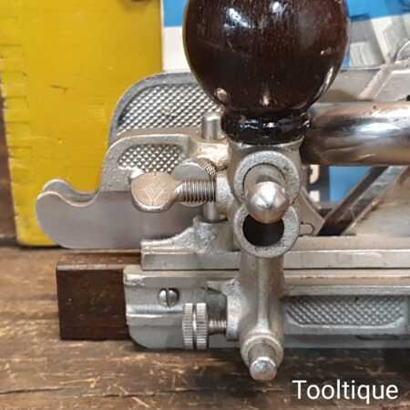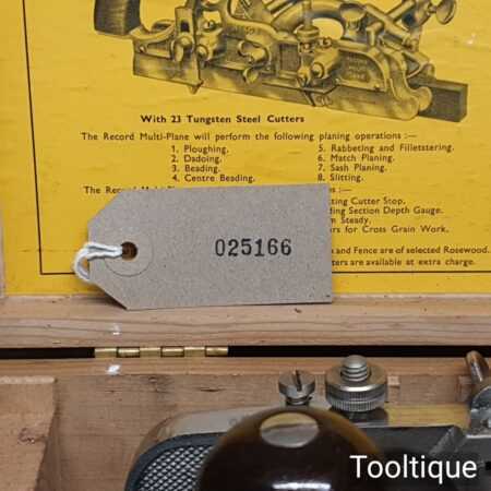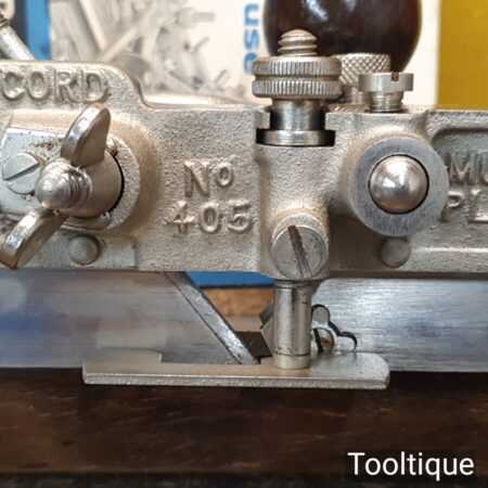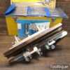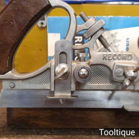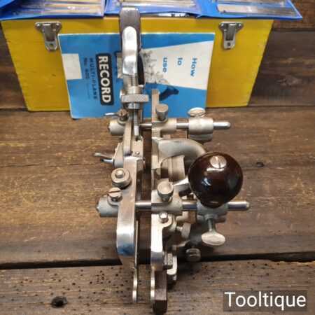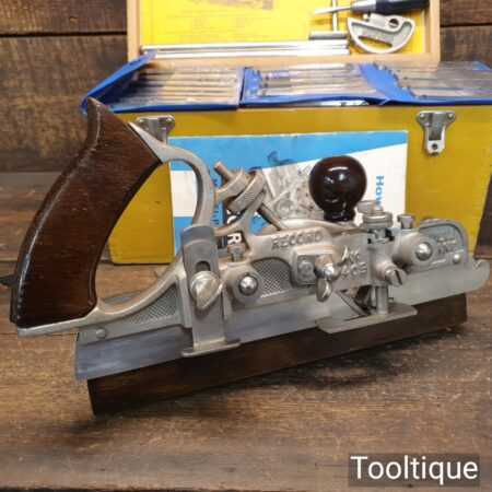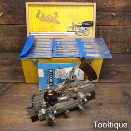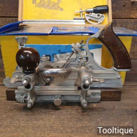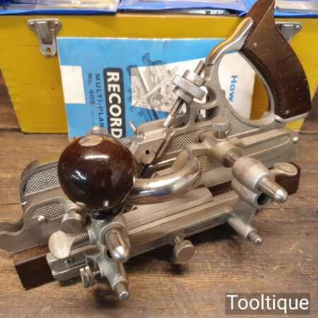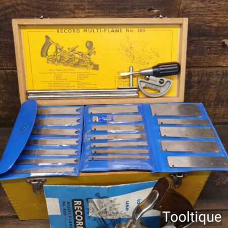 Vintage boxed Record No: 405 combination plough plane complete with 22 cutters, fully refurbished and ready for use. The plane is in excellent condition and all components move smoothly. Note: We do not sharpen the irons.