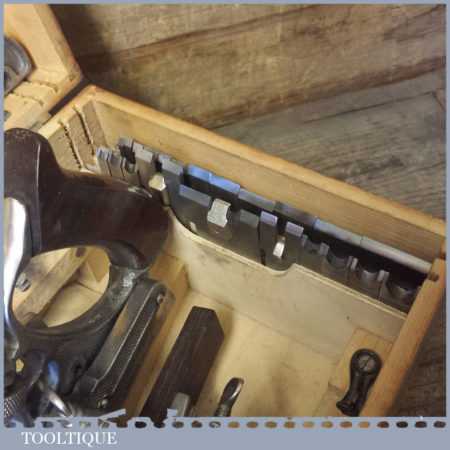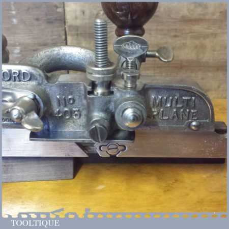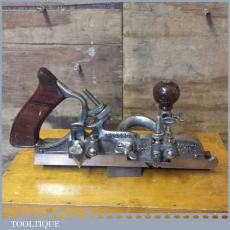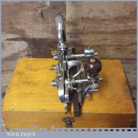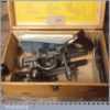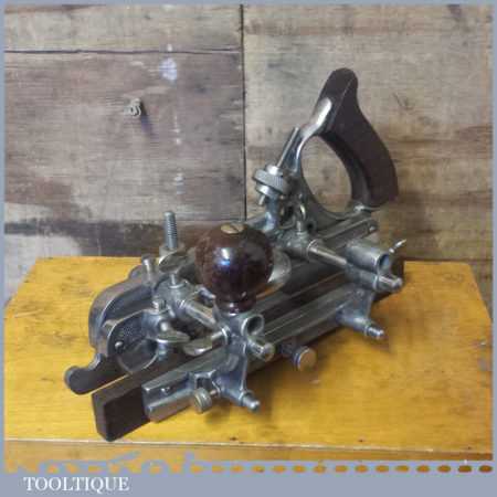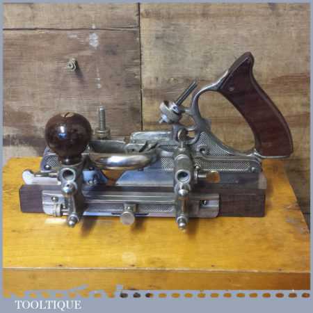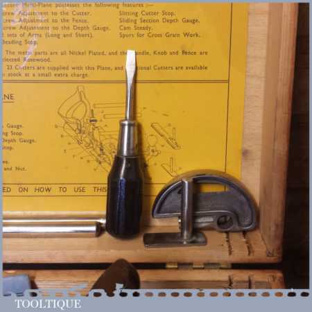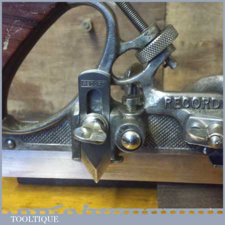 Vintage boxed Record No: 405 combination plough plane complete with 22 cutters, fully refurbished and ready for use. The plane is in good condition and all components move smoothly. Note: We do not sharpen the irons.