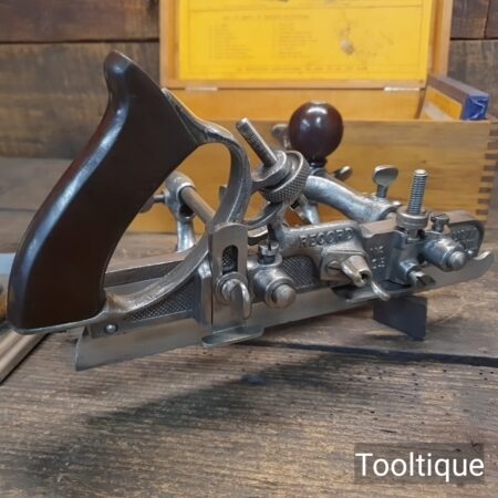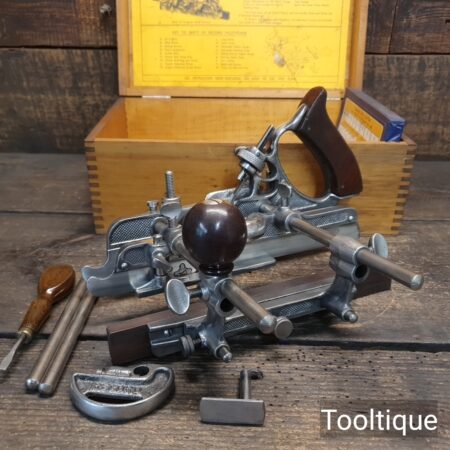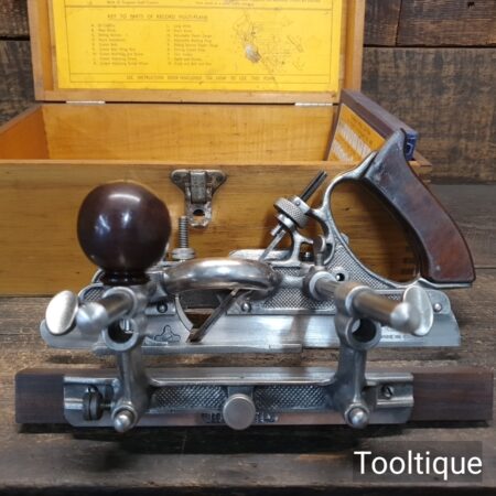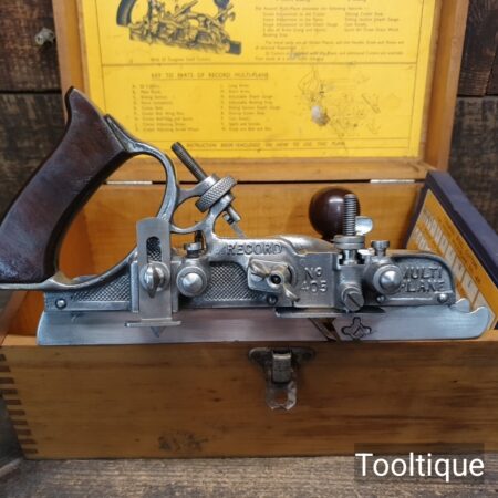 Vintage Boxed Record No: 405 Multi Combination Plane Complete with all guides irons etc, refurbished ready for use and in good used condition. Note: Components all move and adjust smoothly because of the time and effort put into it.