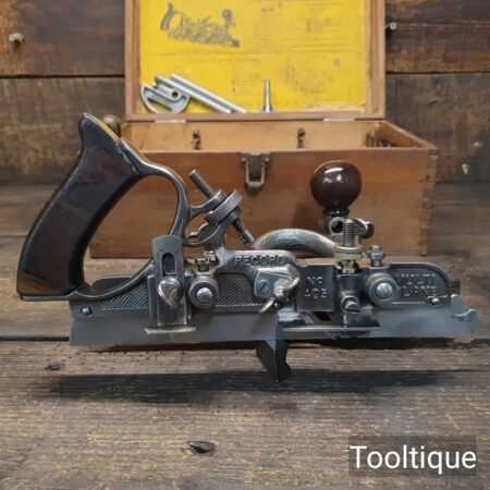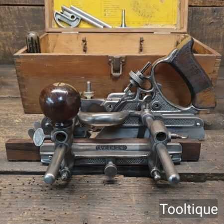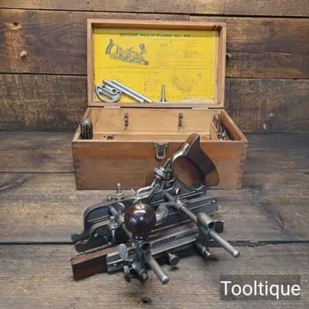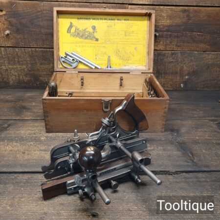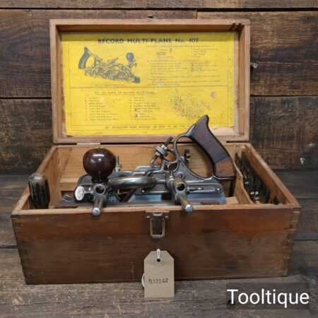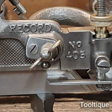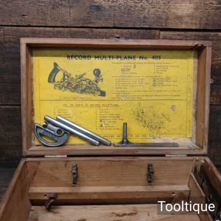 Vintage Boxed Record No: 405 Multi Plough Plane Complete with cutters, in good used condition. Note: Adjusts Smoothly.