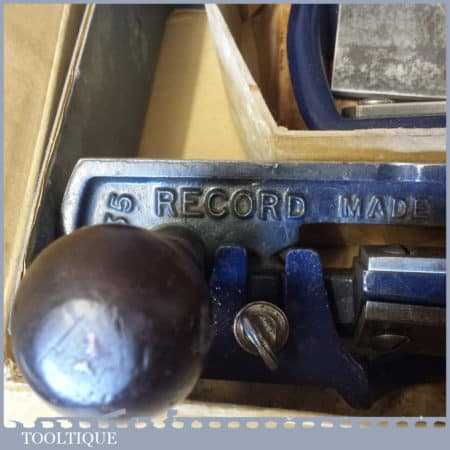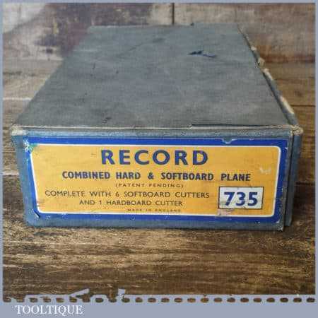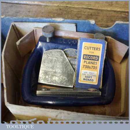 Vintage boxed Record No: 735 fibreboard plane with attachments in good used condition.