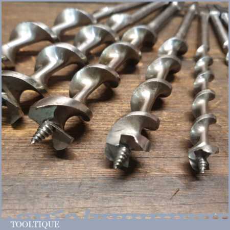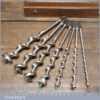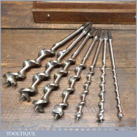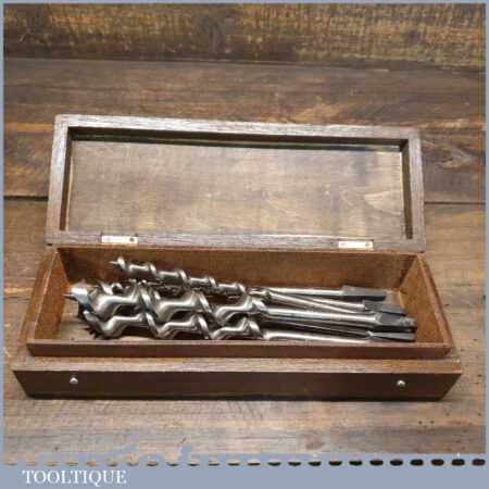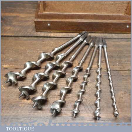 Vintage boxed set Ridgeway of 7 No: double spur screw auger bits ranging between 5/16” – 1” in good used condition