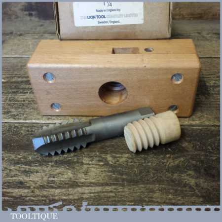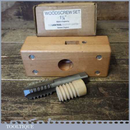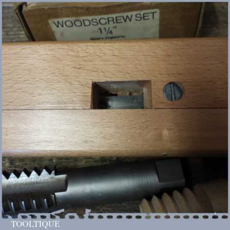 Vintage boxed Sarjent’s 1 ¼” screw box, tap and drill set in good used condition.