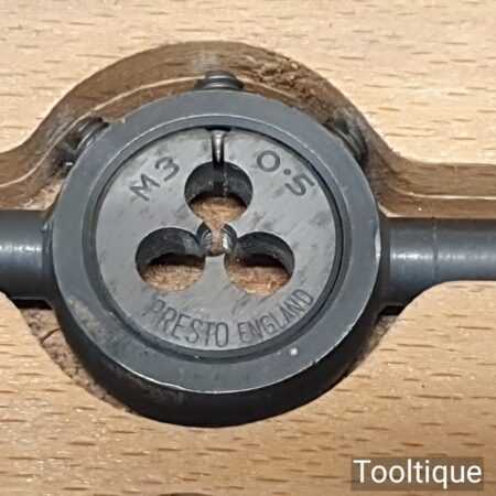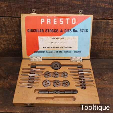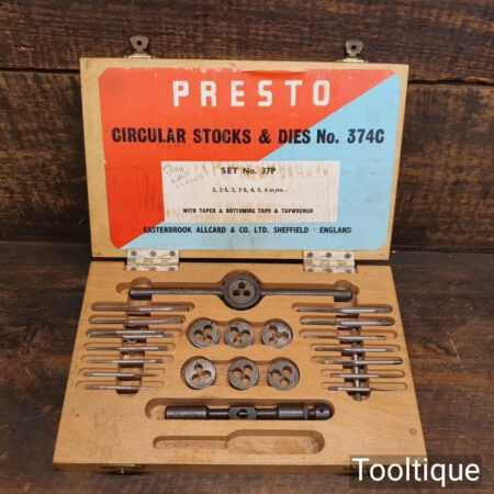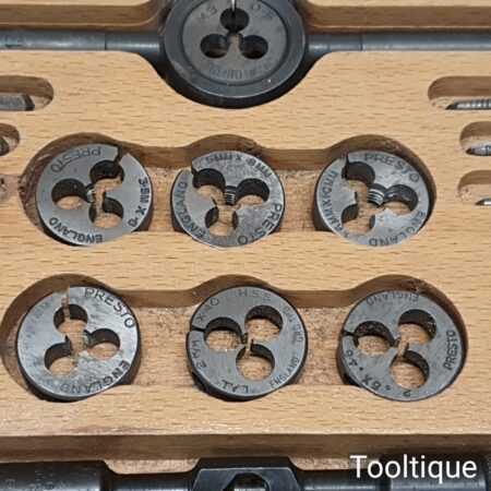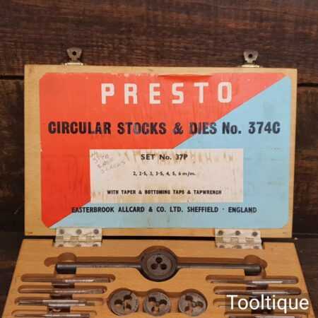 Vintage boxed set of metric Presto circular stocks and dies No: 374C made in Sheffield, In good used condition