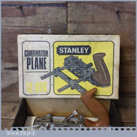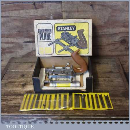 Vintage boxed Stanley, England N0: 13-050 combination plough plane complete with 18 cutters, fully refurbished and ready for use. The plane is in good condition and all components move smoothly. Note: We do not sharpen the irons