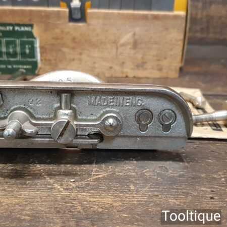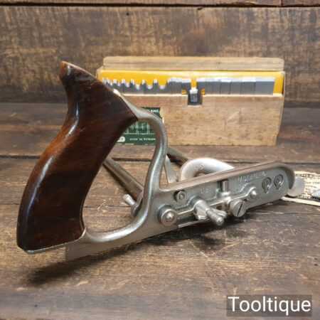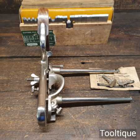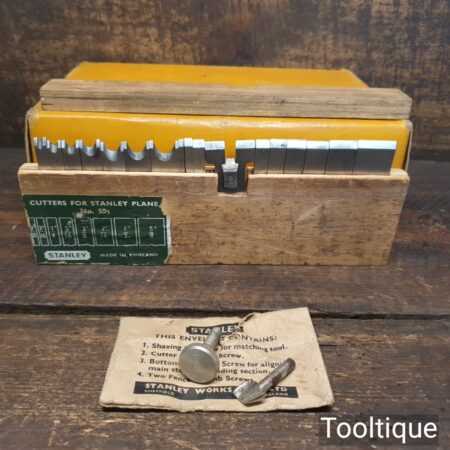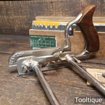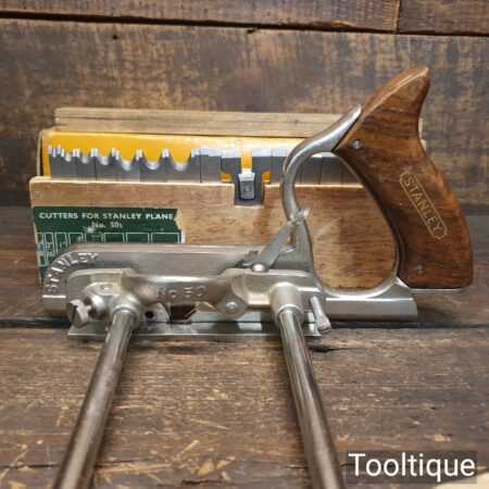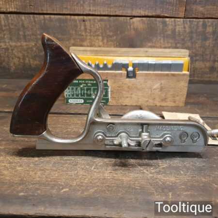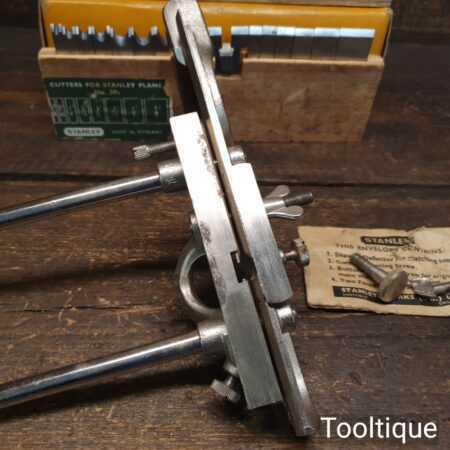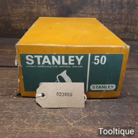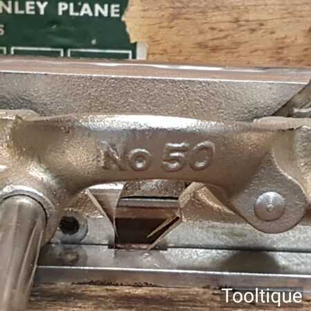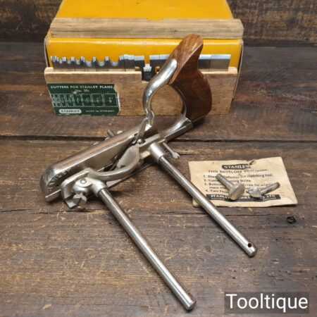 Vintage boxed Stanley England No: 50 combination plough plane complete with 17 cutters, fully refurbished and ready for use. The plane is in good condition and all components move smoothly. Note: We do not sharpen the irons
