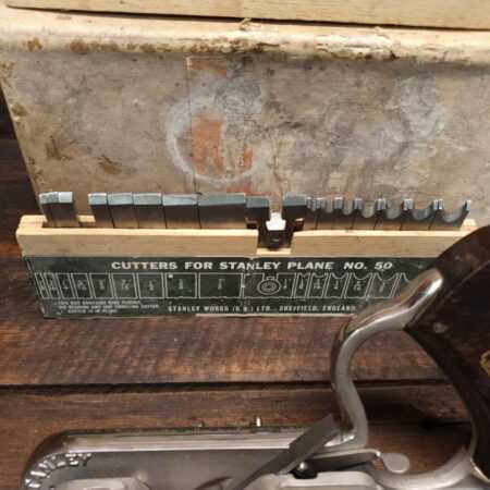 Vintage boxed Stanley England No: 50 combination plough plane complete with 17 cutters, fully refurbished and ready for use. The plane is in good condition and all components move smoothly. Note: We do not sharpen the irons.