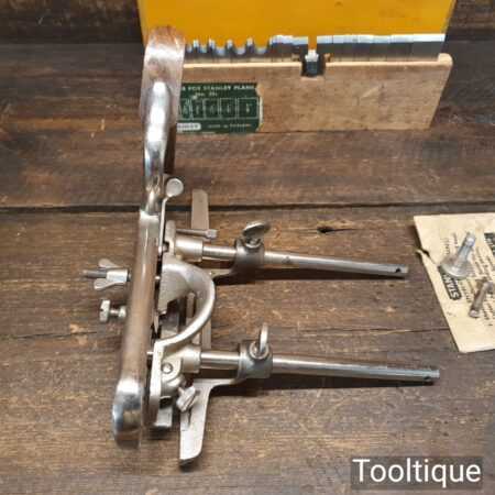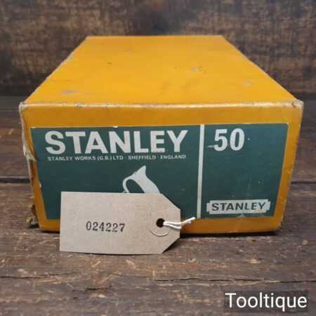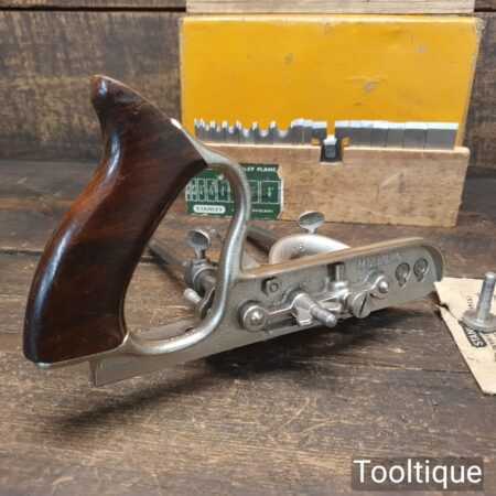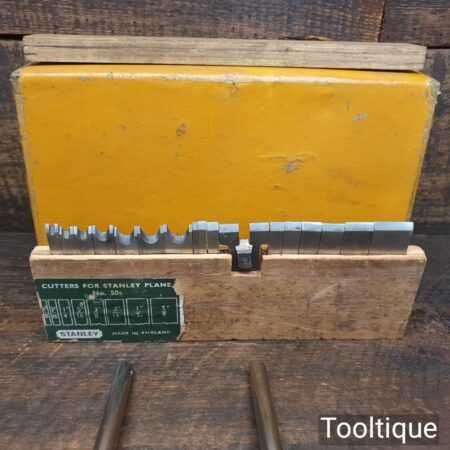 Vintage boxed Stanley England No: 50 combination plough plane complete with 18 cutters, fully refurbished and ready for use. The plane is in good condition and all components move smoothly. Note: We do not sharpen the irons.