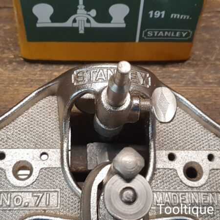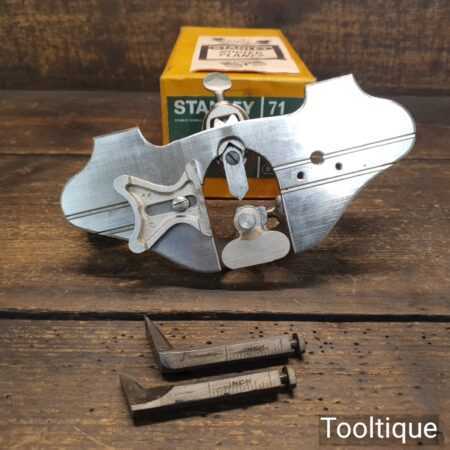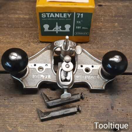Vintage boxed Stanley England No: 71 hand router plane complete with fence, depth stop and 3 irons and in good used condition