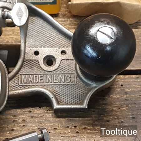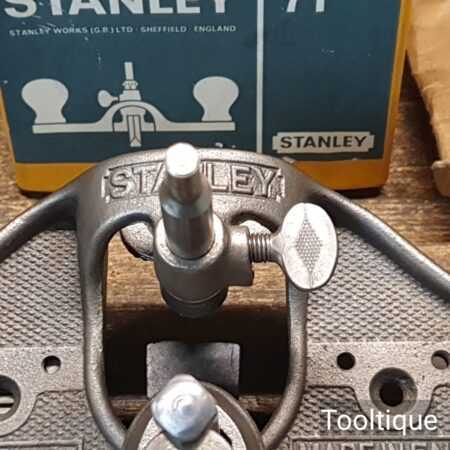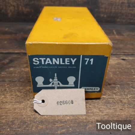 Vintage boxed Stanley England No: 71 hand router plane complete with fence, depth stop and 3 irons and in good used condition.