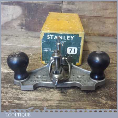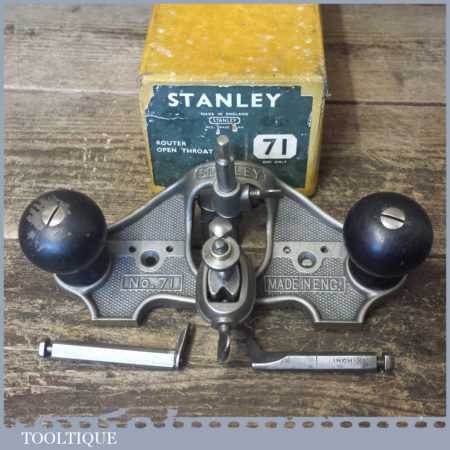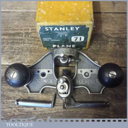 Vintage boxed Stanley, England No: 71 hand router plane complete with fence, depth stop and 3 irons and in good used condition