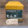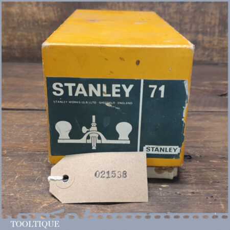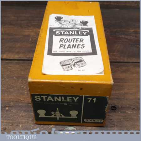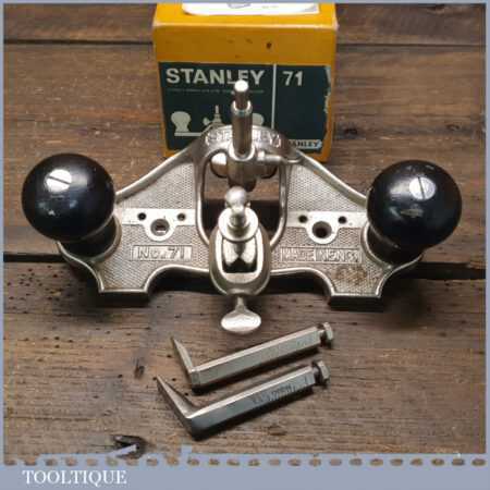 Vintage boxed Stanley England No: 71 hand router plane complete with fence, depth stop and 3 irons and in good used condition.