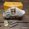 We sell collectable and old usable tools that are lightly cleaned before being offered for sale. Used tools are not perfect and may have minor flaws due to wear and tear. Any major defects will be pointed out in the description. All items are sold in an “as is”condition and have not been tested; some reconditioning may be required according to buyer’s standards which can vary wildly. Whilst best reasonable efforts are made to ensure usable items are brought to a good standard, those expecting perfection from a used tools should consider buying new. Items described as ‘Antique’ or ‘Collectable’ are not sold for the purpose of use, if the buyer uses them we regard the item as sold or intends to use them it is their responsibility for additional costs to upgrade. If in doubt please ask as we are more than happy to help.