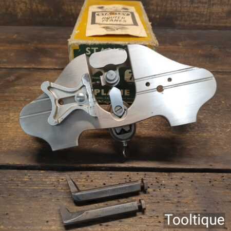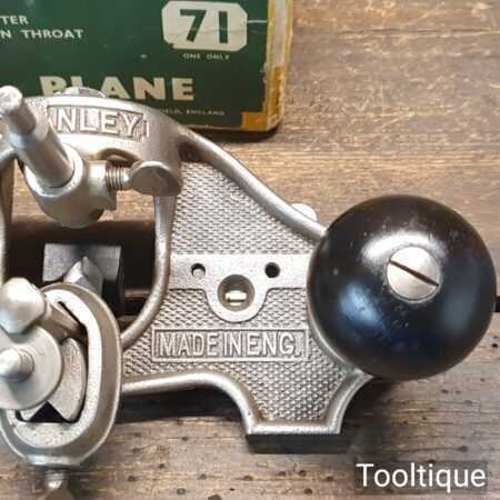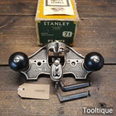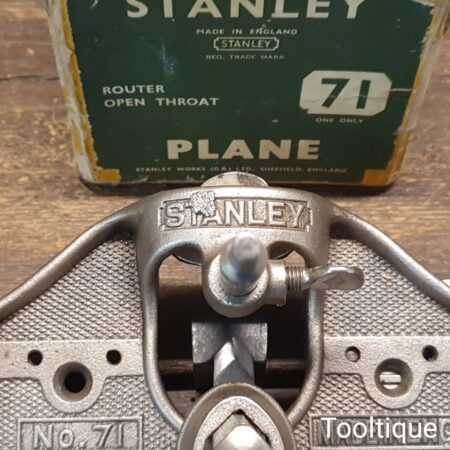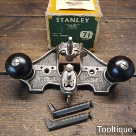 Vintage Boxed Stanley England No: 71 hand router plane complete with fence, depth stop and 3 irons and in good used condition.