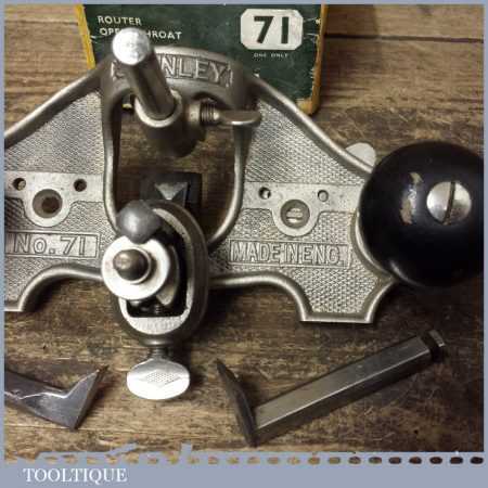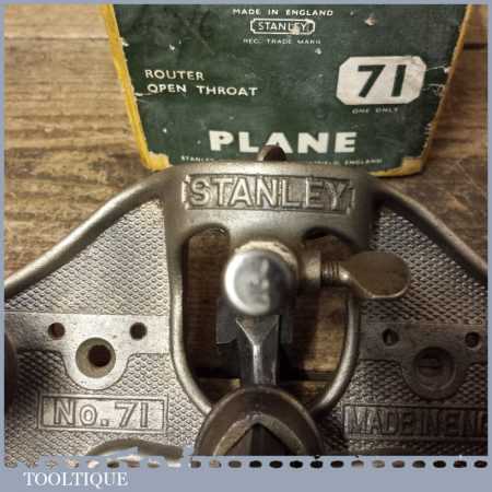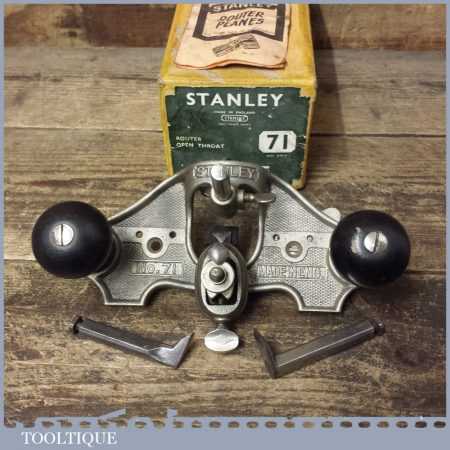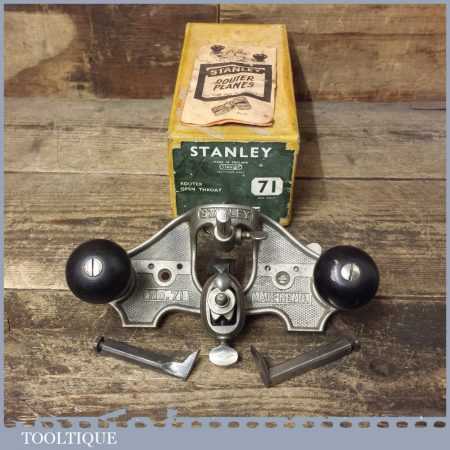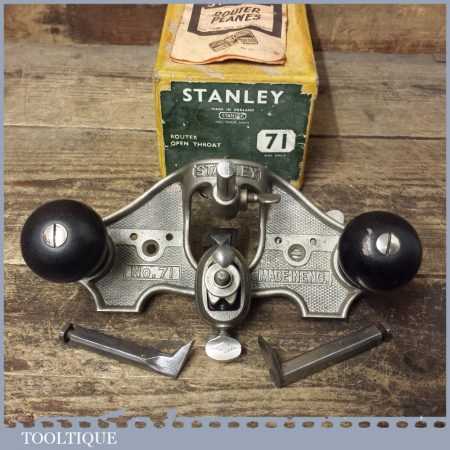 Vintage boxed Stanley, England No: 71 hand router plane complete with fence, depth stop and 3 irons and in good used condition.