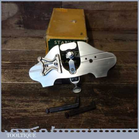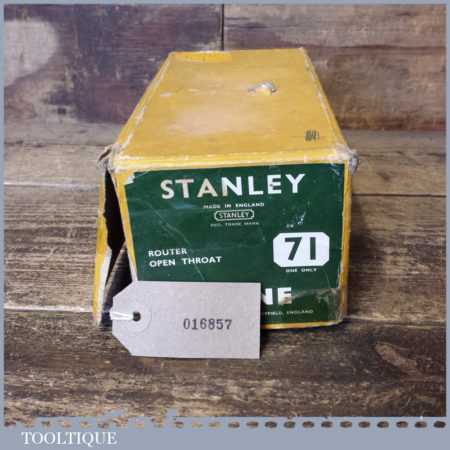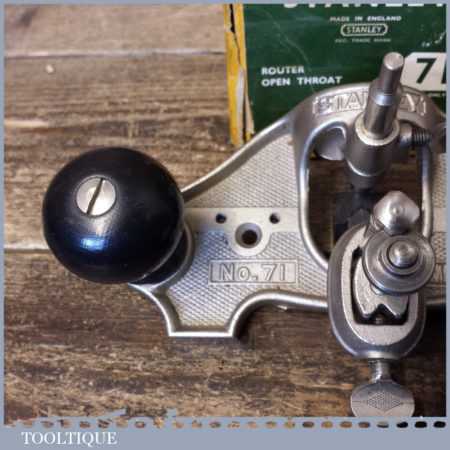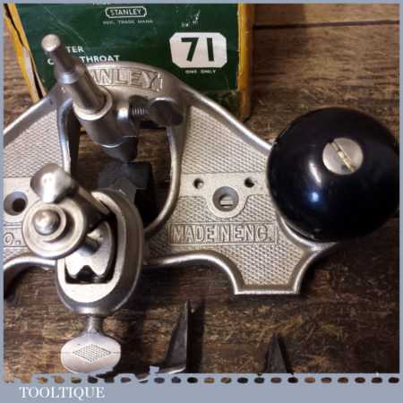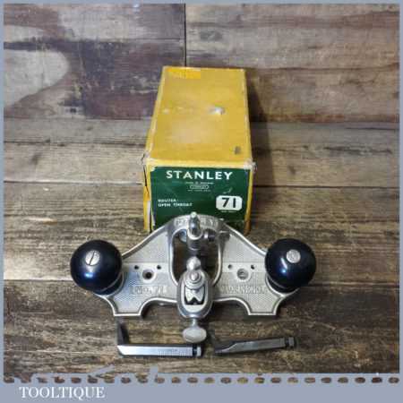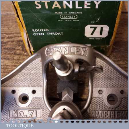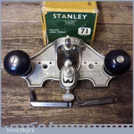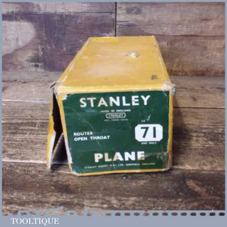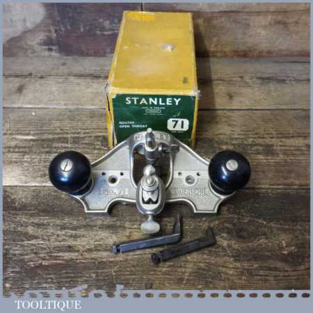 Vintage boxed Stanley England No: 71 hand router plane complete with fence, depth stop and 3 irons and in near mint condition.