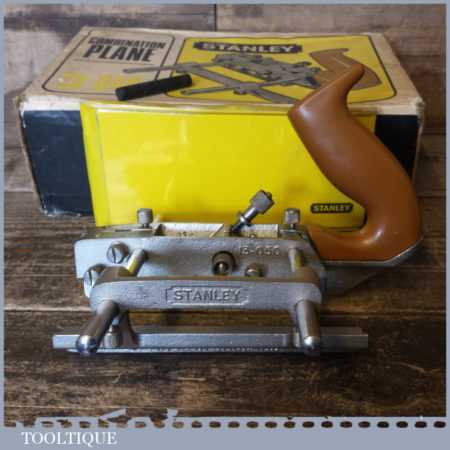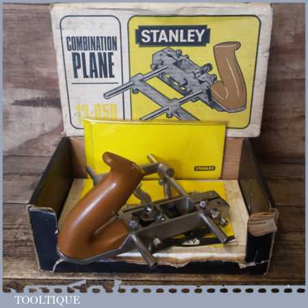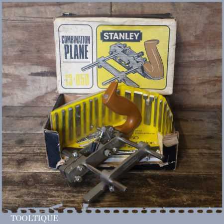 Vintage Boxed Stanley N0: 13-050 combination plough plane complete with 18 cutters, fully refurbished and ready for use. The plane is in good condition and all components move smoothly. Note: We do not sharpen the irons