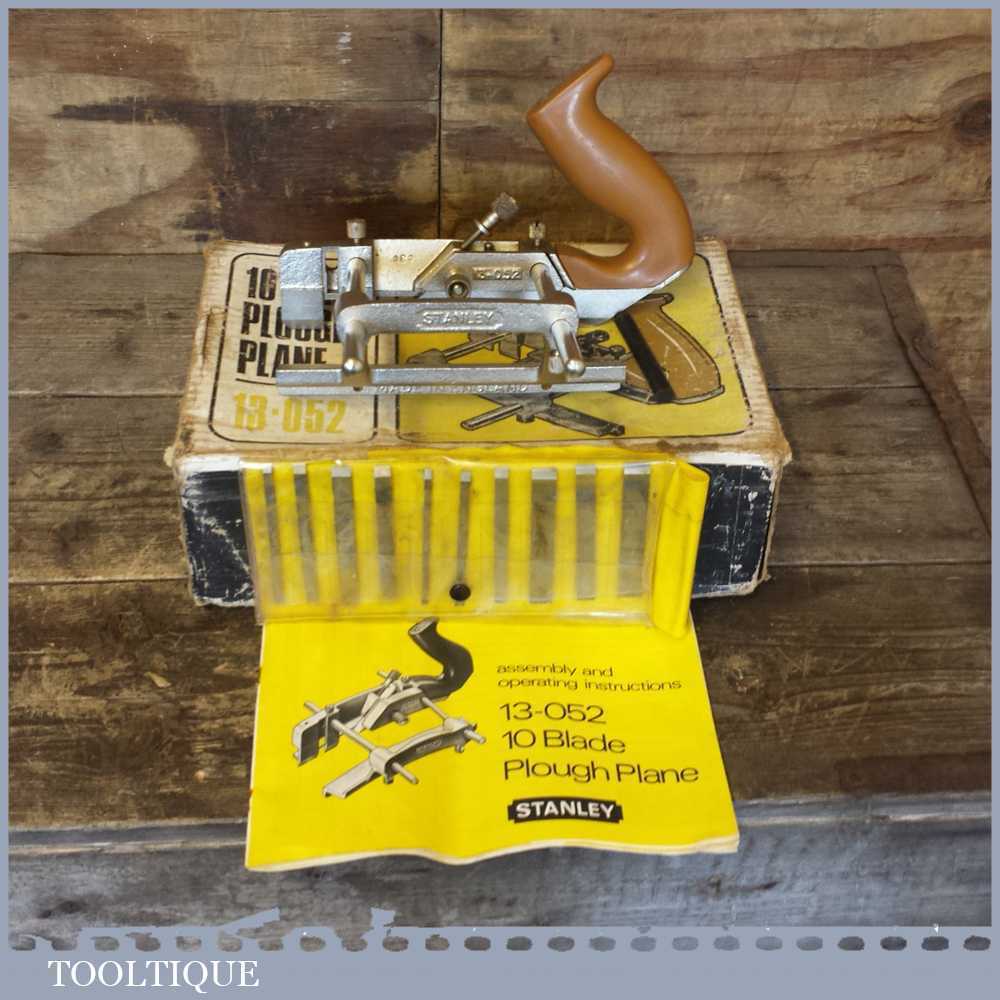 Vintage Boxed Stanley N0: 13-052 combination plough plane with 10 cutters in good used condition.