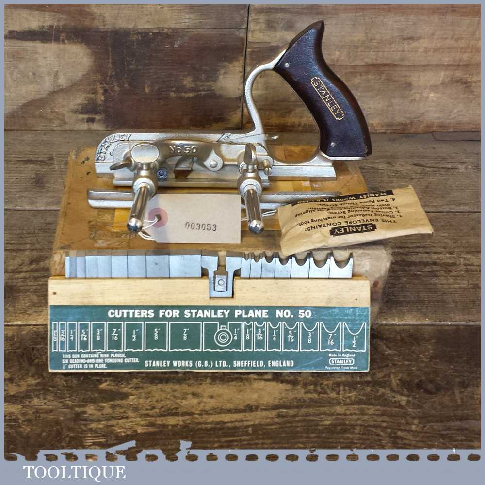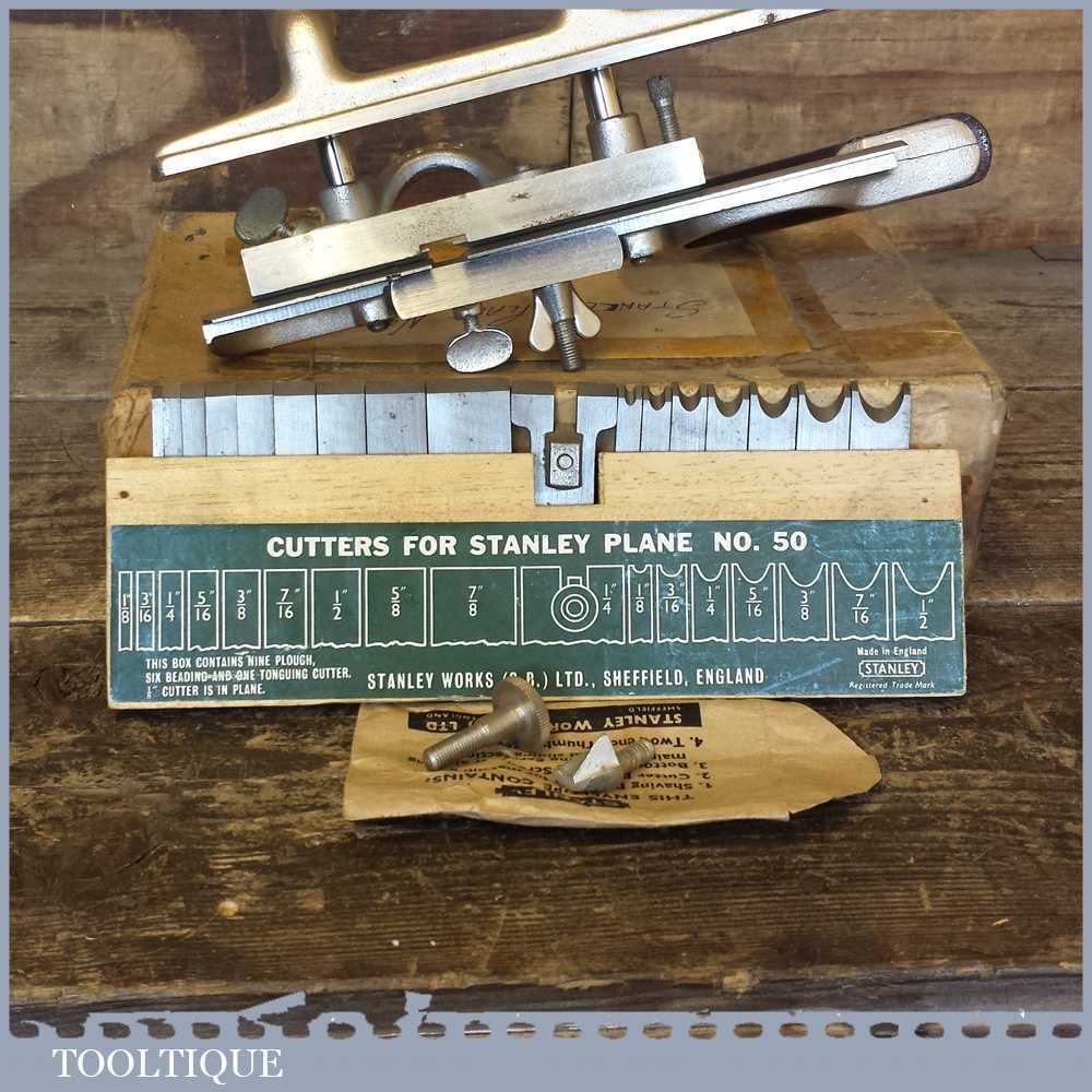 Vintage Boxed Stanley N0: 50 combination plough plane in good used condition.