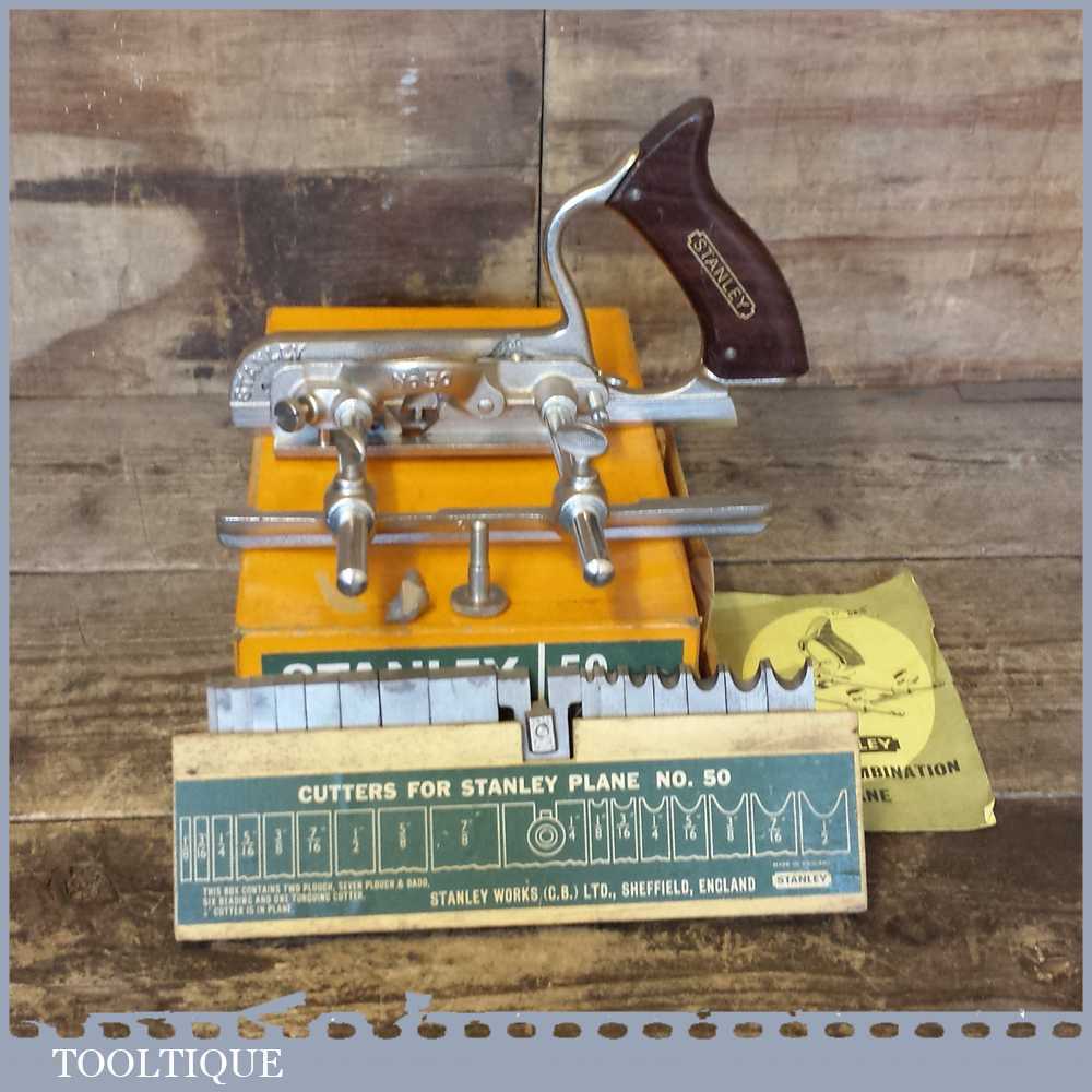 Vintage Boxed Stanley N0: 50 combination plough plane in good used condition.