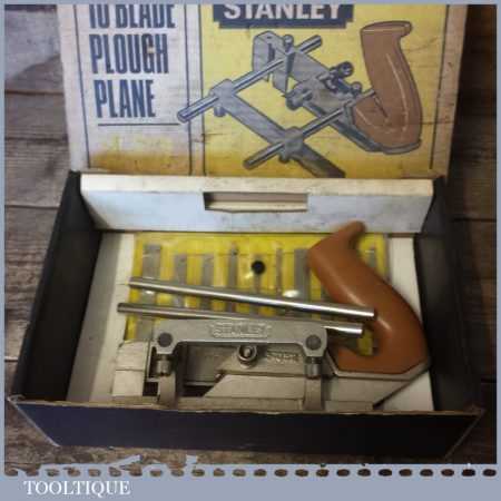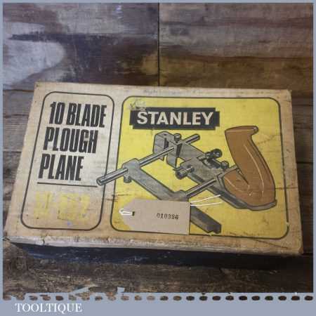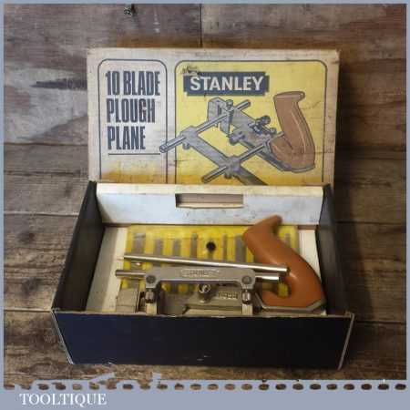 Vintage Boxed Stanley N0: 13-052 combination plough plane with 10 cutters, fully refurbished and ready for use. The plane is in good condition and all components move smoothly. Note: We do not sharpen the irons.