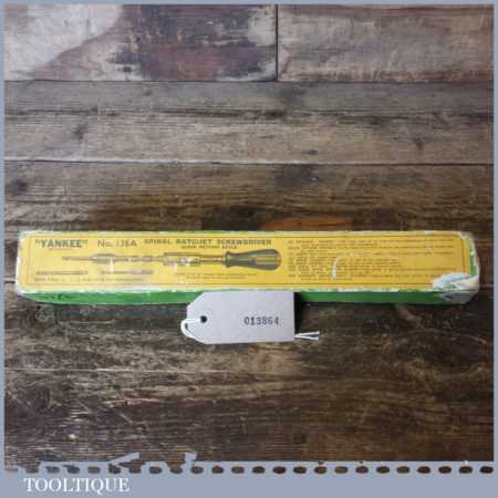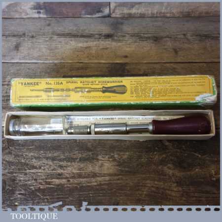 Vintage boxed Stanley No: 135A Yankee pump action screwdriver in good used condition. Note: 2 ends.