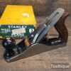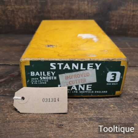 Vintage Boxed Stanley England No: 3 smoothing plane refurbished ready for use and in good used condition. When refurbishing planes, we do not merely clean them to make them look good, they are restored to a level that ensures this plane is actually ‘in plane to within 0.02mm’ sharpened, honed and all the components are thoroughly cleaned so that they move freely. Our planes are specifically reconditioned to satisfy professional tradesmen who will instantly know the difference between buying one of our planes over general other used ones.